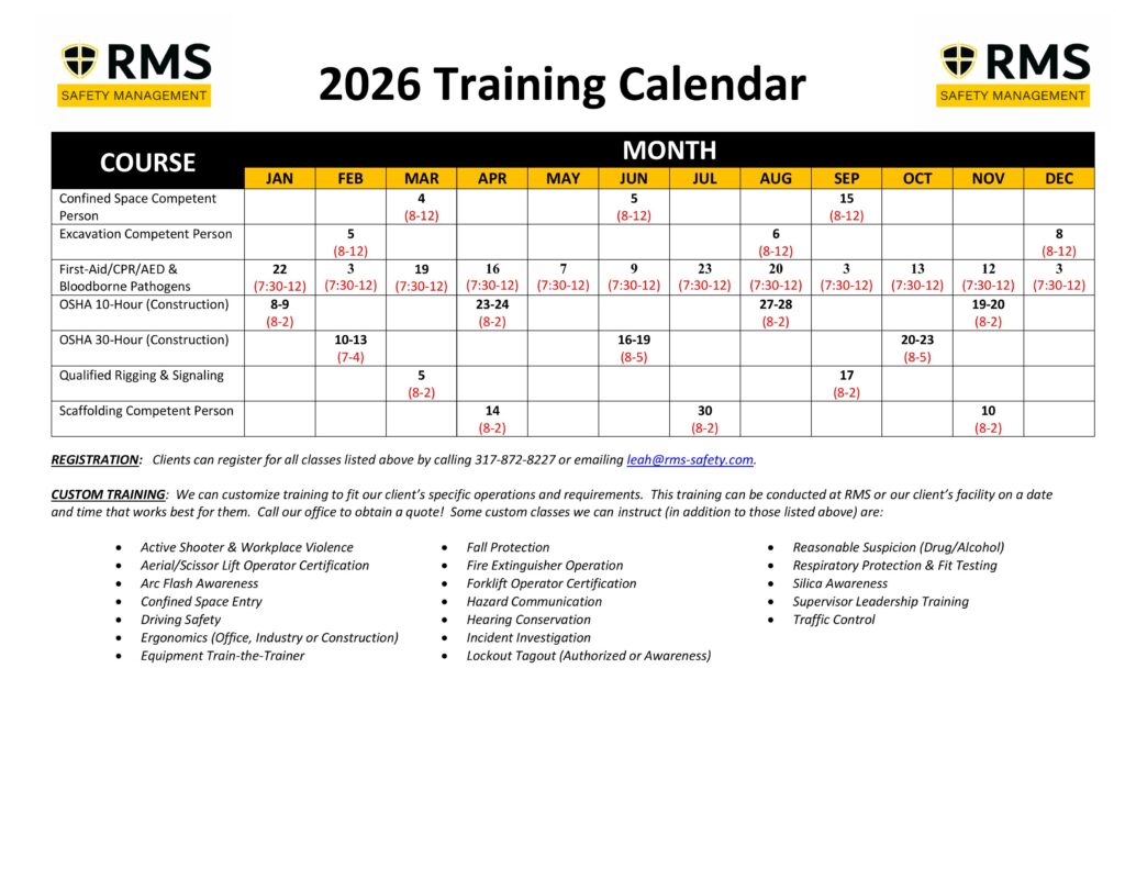 • SCHEDULED TRAINING. Classes that are open to the public and scheduled to take place at the RMS facility in Indianapolis.